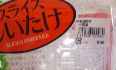 作り終え、やっすぅ~く買い求めた『スライスしいたけ』の袋をみたら『中国産』と